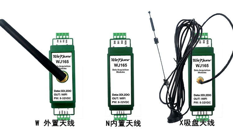 WJ165 遠程I/O模塊,可以用來測量三路開關量信號,并有兩路開關量輸出。可做為3路計數器或者3路頻率測量,